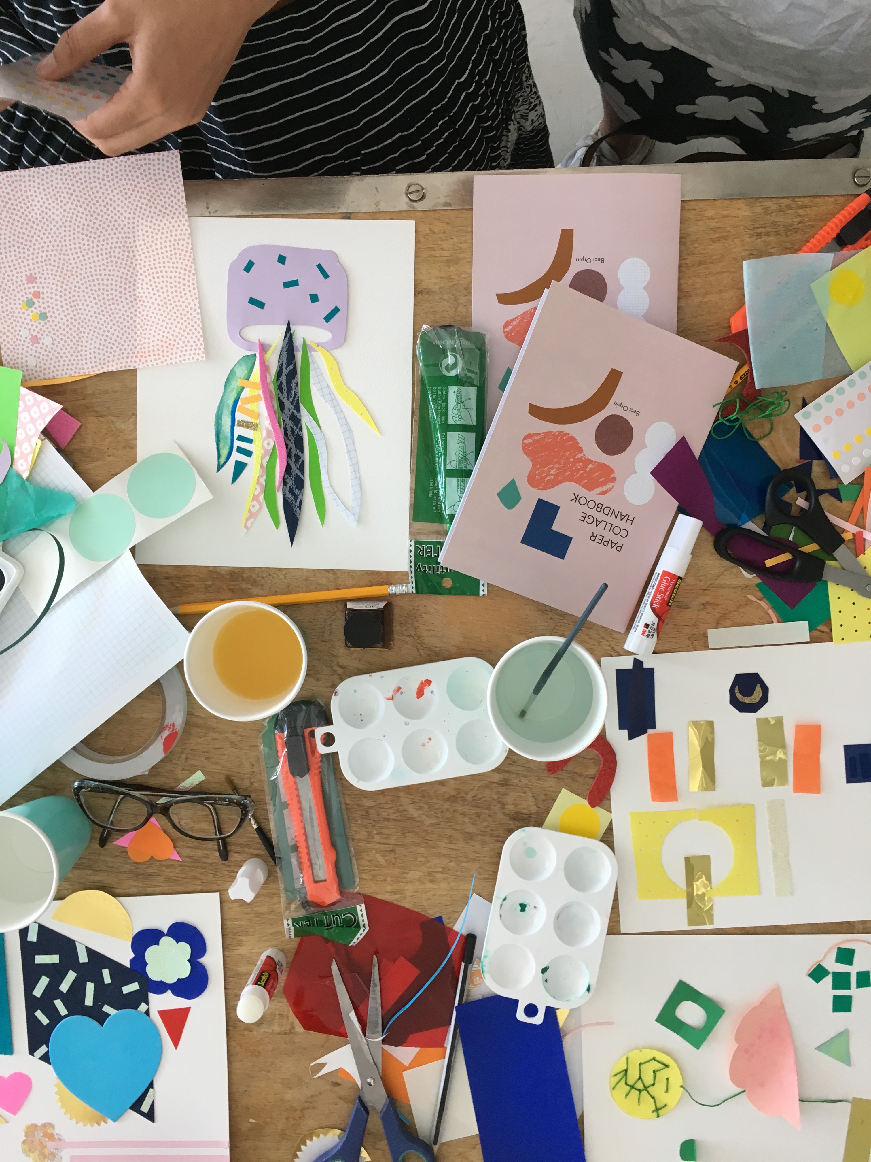 When I am making my collages, I like to use other art materials to create colours and patterns on the paper before I cut it, such as coloured pencils and markers, paint (watercolour, acrylic, gouache), inks, pastels or crayons. Different materials create different textures and effects - its fun to experiment with these.