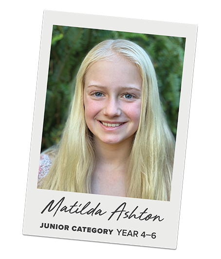 My name is Matilda Ashton and I’m eleven years old. I have a determined personality and I am passionate about writing. I like to finish what I start, and I love to read. One day I hope to become an author. I love nature and animals along with sport, arts and crafts and school. I have a great appetite and love trying new things. In my family, I have my Mum and Dad, a younger sister called Evangeline (Evie for short), a dog named Coco and two pet hermit crabs named Bubbles and Coral.