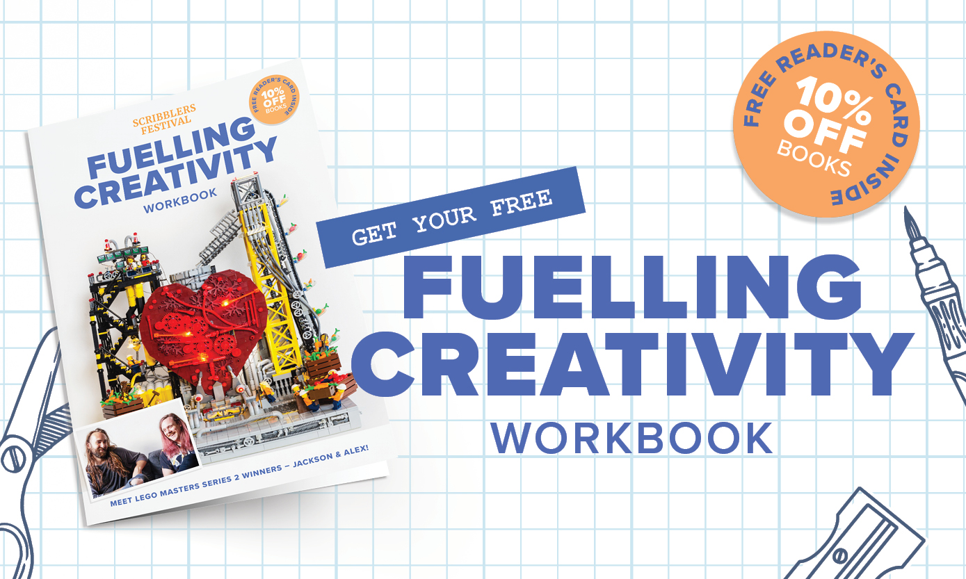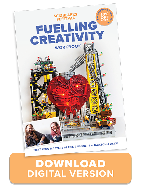 What do you get when you combine artists, engineers, authors, thousands of LEGO, the Scribblers team, and Festival dreams unrealised? Our exclusive new Fuelling Creativity Workbook & Video Series! Get inspired by LEGO Masters Series 2 Winners - Jackson & Alex, author and illustrator Kylie Howarth, author and historian Mark Greenwood, cultural tour guide and chef Marissa Verma, and more, with their creative exercises that are sure to move young Scribblers creative gears in to motion. With a workbook chock full of pages made for scribbling, gluing, and sketching, the corresponding videos bring their ideas to life and take you behind the scenes of how these creative masters think, innovate and...CREATE!